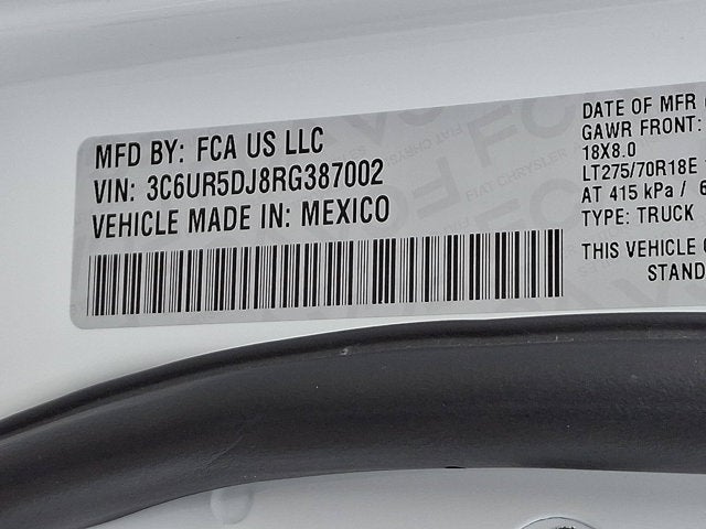 TOW HOOKS, PARKSENSE FRONT/REAR PARK ASSIST SYSTEM, MOPAR SPRAY IN BEDLINER, MANUFACTURER'S STATEMENT OF ORIGIN, FRONT LICENSE PLATE BRACKET, BRIGHT WHITE CLEARCOAT, ANTI-SPIN DIFFERENTIAL REAR AXLE, 9 ALPINE SPEAKERS W/SUBWOOFER, 3.73 AXLE RATIO (STD), Vinyl Door Trim Insert.